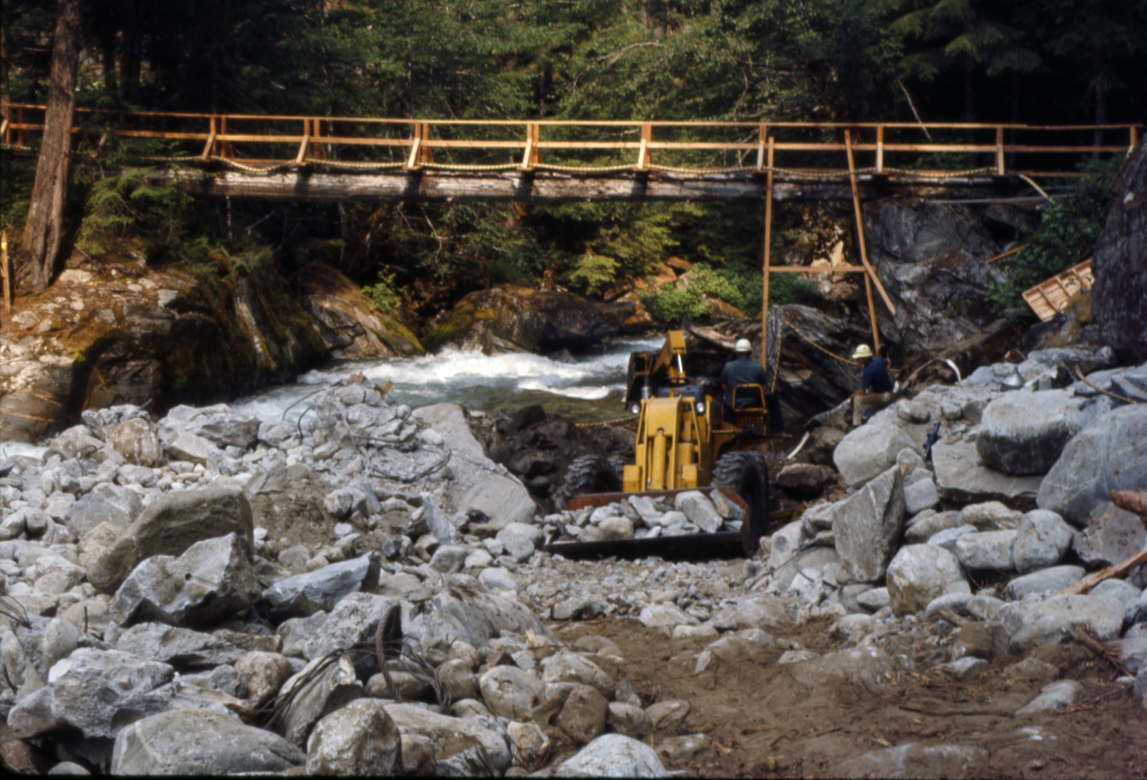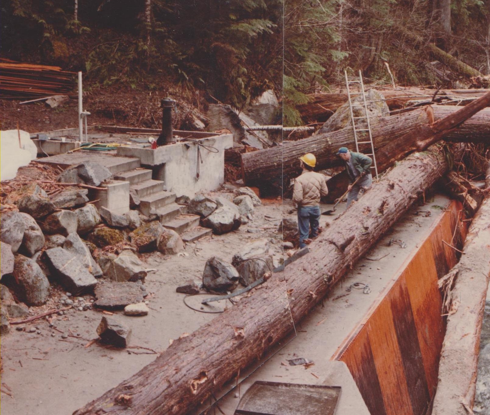 The powerhouse is rebuilt using the original turbines and generator. The headworks (dam and gatehouse) and vehicular bridge over Newhalem Creek, providing access to the powerhouse, are also rebuilt, all having sustained damage from recent flooding.