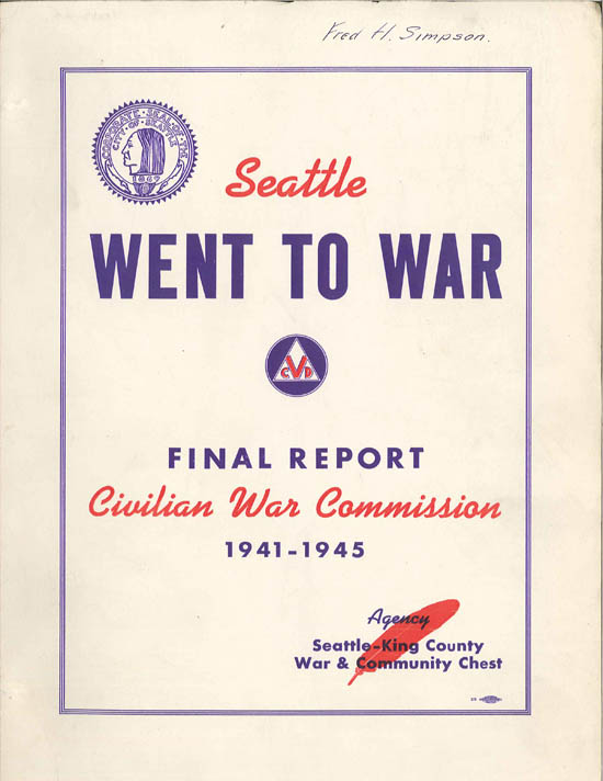 The Commission submitted a final report in 1946, summarizing in detail its activities during the war until it was disbanded in December 1945. In the report, Mayor Devin summed up the achievements of Seattle's citizens and the Commission that coordinated their efforts: