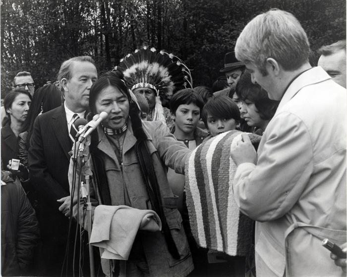 At the site dedication and announcement ceremony, Mayor Uhlman concluded his remarks: "It is perhaps prophetic that the original Indian name for the West Point of Fort Lawton was derived from a word meaning 'to thrust ahead'; the agreement we have reached is a thrust forward in the type of relationship possible between the Indian and the white man in America. As Chief Seattle said, 'We may be brothers after all.' We are trying to prove him right."