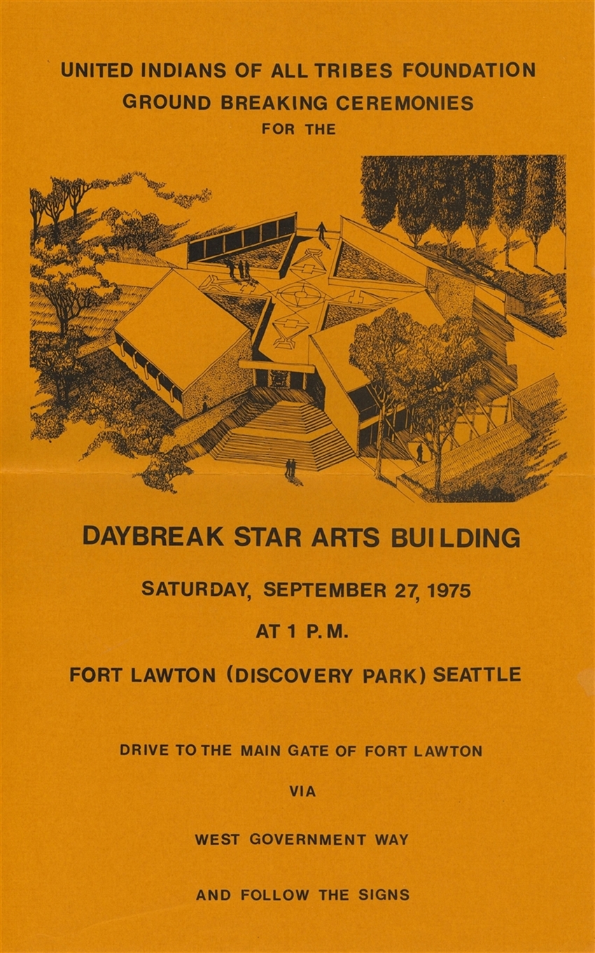 The creation of Daybreak Star Indian Cultural Center, located at the former site of the Fort Lawton military base in today's Discovery Park, was the result of persistent protest and activism by Seattle's Native community. A coordinated effort to peaceably occupy the decommissioned Fort in 1970 triggered years of negotiation with city officials to reclaim the land for use by Native peoples. The opening of Daybreak Star in 1977 was a direct result of these actions, and marked the first time public land was officially dedicated for Native peoples' use in Seattle since the city was incorporated in 1869.