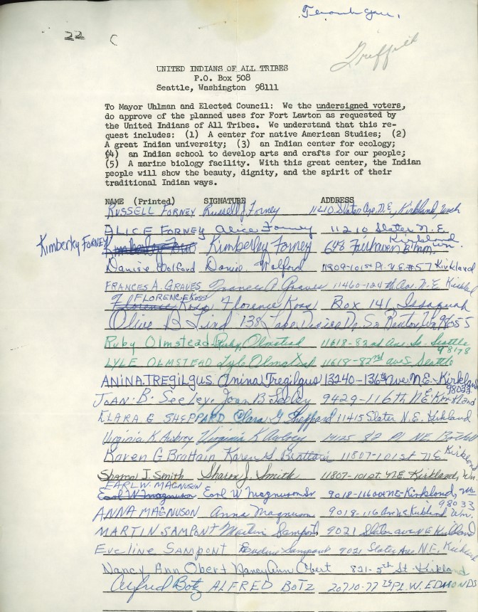 While city and national leaders were moving ahead with plans to turn Fort Lawton into a park, members of Seattle's Native American community saw the decommissioning of Fort Lawton as an opportunity to reclaim the land for use by Indigenous peoples.