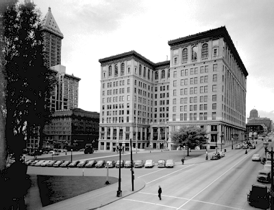 It was not until after World War II that the City began to consider leaving the County-City Building and looking for its own City Hall. In 1935, City Light moved into its own building, at Third between Madison and Spring Streets, providing some breathing room for the other City offices. Explorations into a government buildings center were made in the mid-1940s.