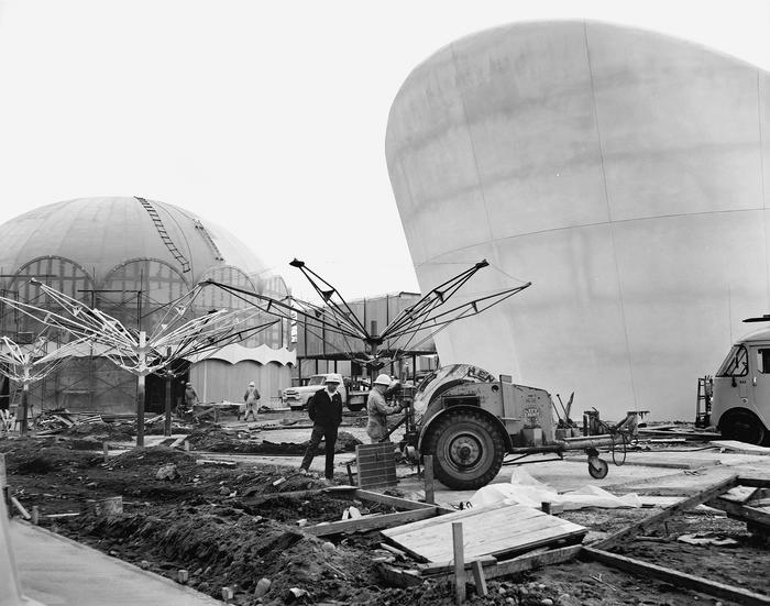 SCL developed the Pavilion of Electric Power exhibit featuring a 40-foot-tall depiction of a hydroelectric dam. Located near the foot of the Space Needle, the Pavilion also featured a relief map illustrating sources of electricity in Washington State. A model had been built by July 1961, groundbreaking took place on November 9, 1961, and construction was underway by the end of 1961.