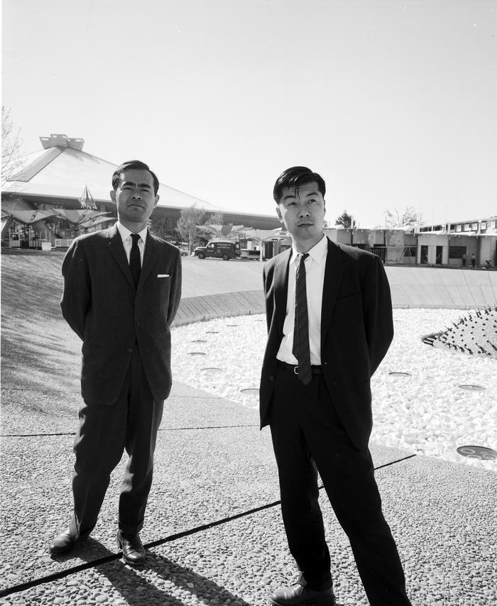 The Board of Public Works conducted oversight and licensing for building projects on municipal land, including design and construction of fair exhibits. The International Fountain was among those projects. Tokyo architects Hideki Shimizu and Kazuyuki Matsushita won an international competition to design the fountain. The John H. Sellen Construction Company was authorized by the Board of Public Works to construct the fountain, referred to as the "Illuminated Water Display," in August 1961. The final price for construction was $289,159.81.