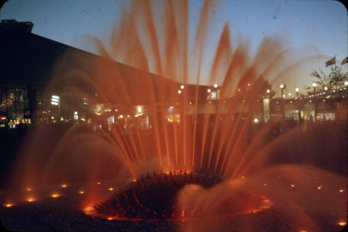 On May 10, 1962, not long after the Fair opened, the consulting engineers Valentine & Fisher wrote to City Council with a concern: children playing on the fountain. "The kids are playing 'Fountain Roulette' with the International Fountain. This sort of thing was never intended to be allowed and someone is likely to be severely injured eventually... We recommend that an ordinance be enacted immediately making trespassing upon the white rock area by any unauthorized person a violation of city ordinance."