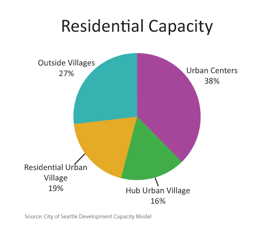 • Seattle Comprehensive Plan growth estimates for 2024: From 2004-2012 Seattle added 29,330 net new housing units representing 62 percent of the City’s 20-year growth estimate of 47,000 housing units. Much of that residential growth, 73 percent, has been occurring in the multifamily urban centers and villages. View the residential capacity pie chart.