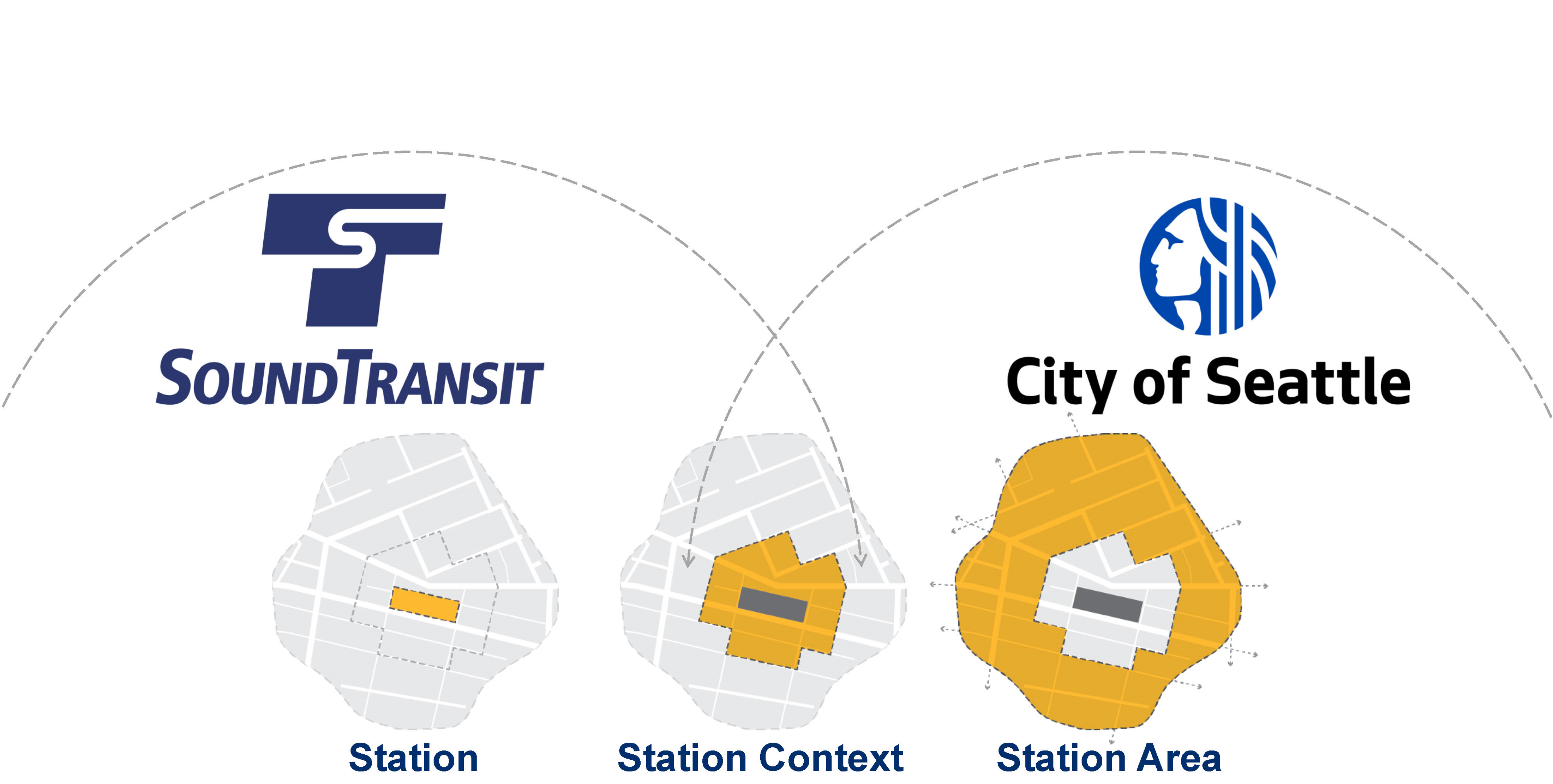 The City is responsible for working with communities to plan the broader Station Area, which is typically the area within a half-mile from the station, but may be larger depending on neighborhood contexts.