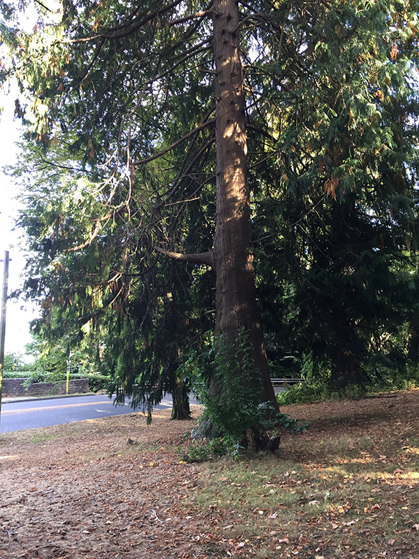 The park proper, a grassy bowl enclosed by woods and brush, is bounded by Dorffel Drive, which curves off and up to the right at a three-way intersection, just before the boulevard heads downward. This is a fine, quiet place for a family picnic beneath a cedar or maple tree. The park continues on down with the boulevard to McGilvra Boulevard.