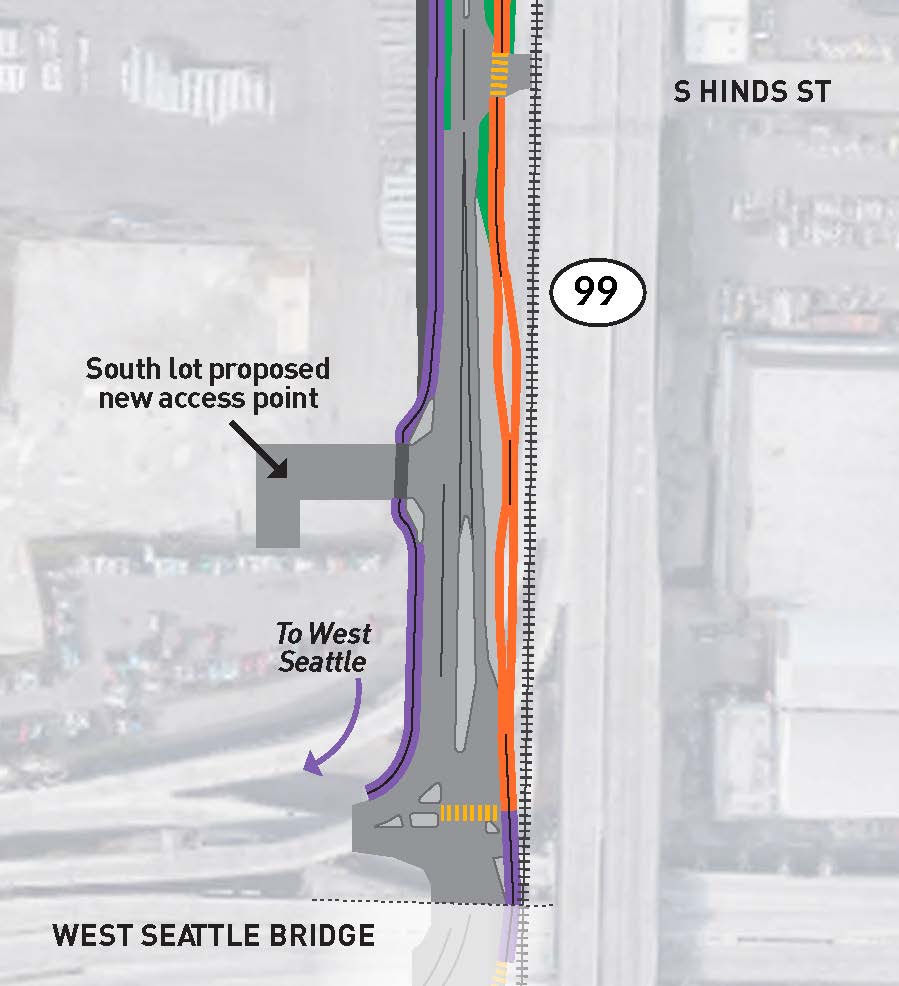 - Realigning the southwest corner of Diagonal Ave S and East Marginal Way S to improve the turning radius for eastbound trucks making a right turn