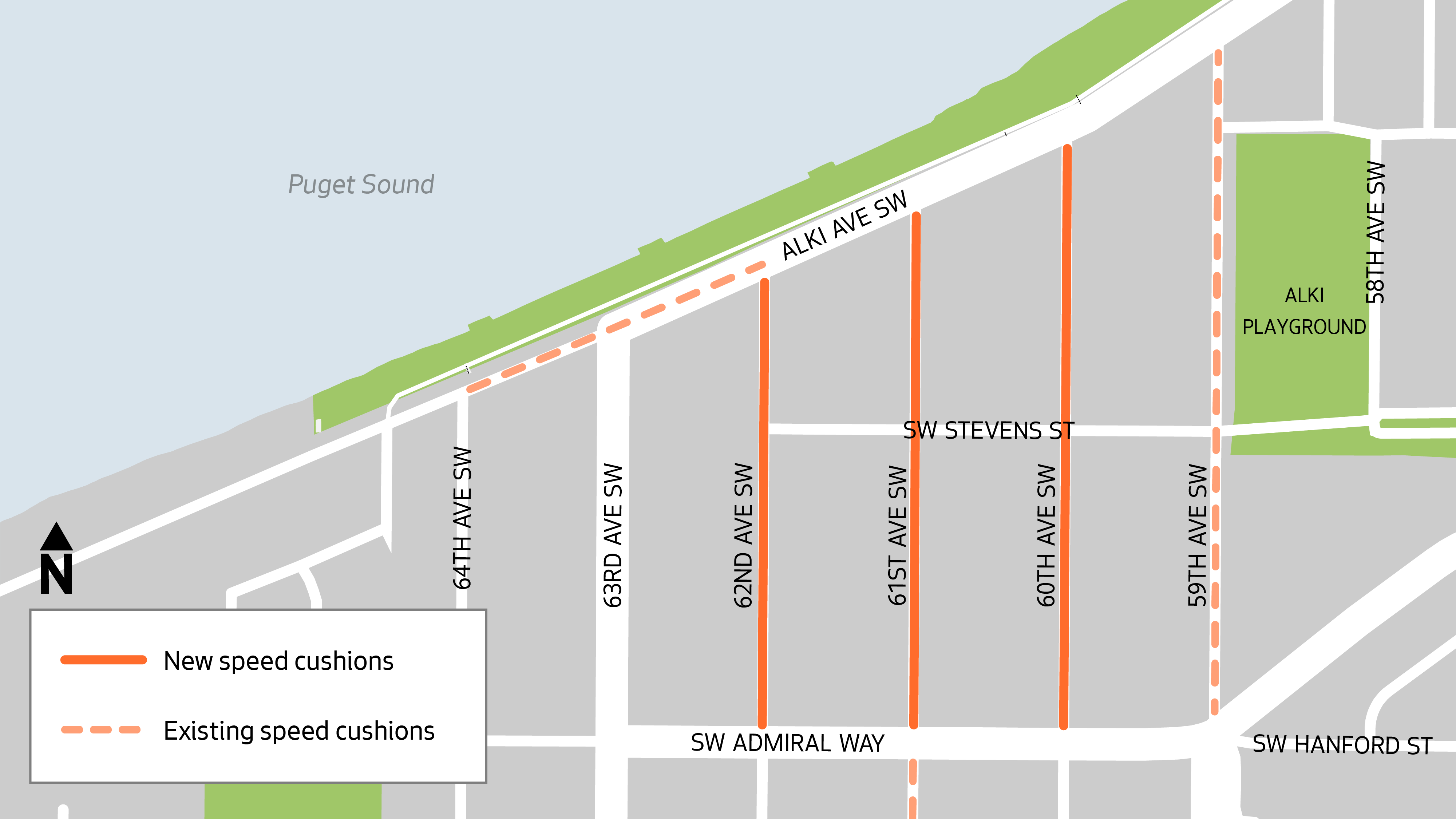 - 62nd Ave SW from SW Admiral Way to Alki Ave SW