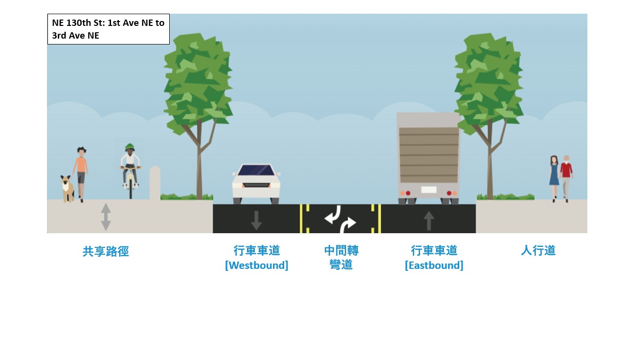 西雅圖交通部(Seattle Department of Transportation, SDOT)正在與海灣公共交通局和金縣公交局協調進行這些改善,並提升該地區大眾交通工具搭乘的便利性。除了新的輕軌服務外,金縣公交局還計畫推出新的公車服務,以支持前往NE 130th St 增設站的可到達性。我們期待聽取您對於該工程能如何幫助您安全往返新輕軌站及您的社區的意見。