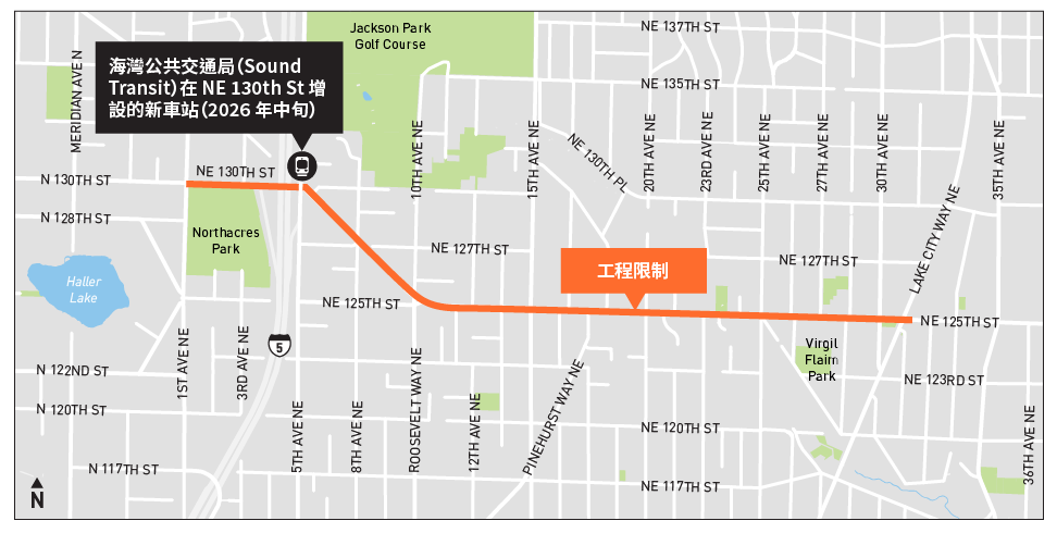 - 發送電子郵件至NE130thSt_NE125thSt_Project@seattle.gov或致電(206)400-7515