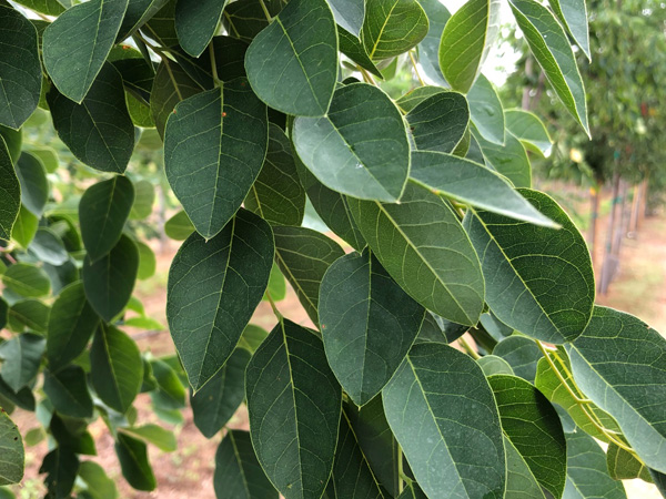 Large doubly compound leaves emerge caramel colored, turn bluish-green in summer and then vibrant yellow in the fall.
