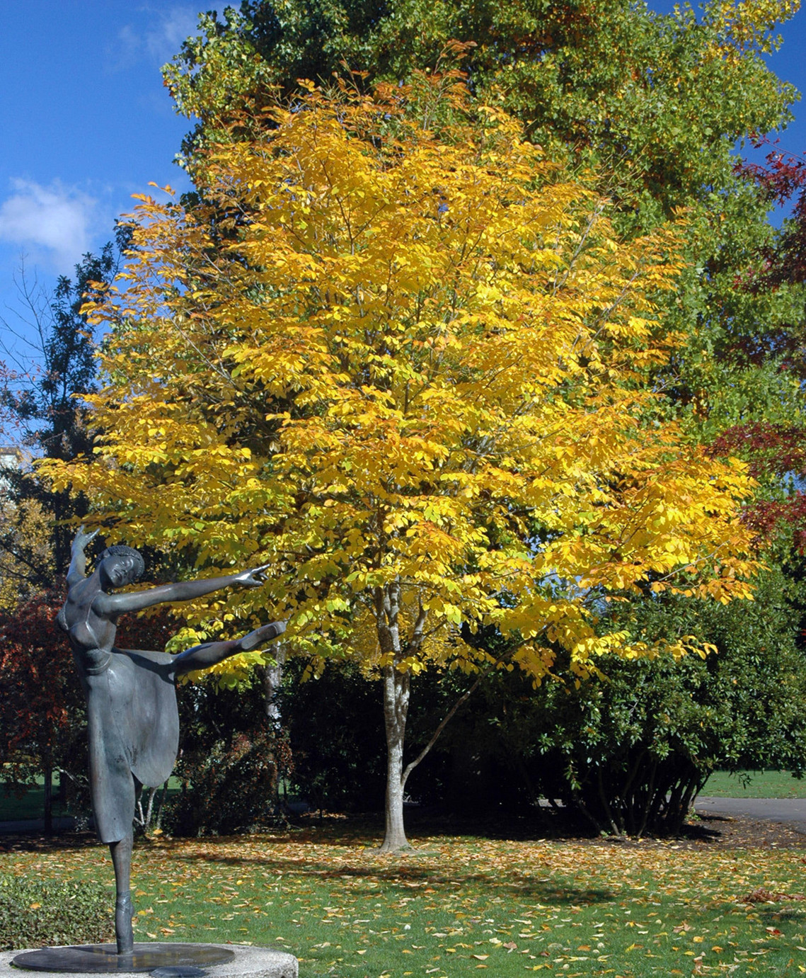 Compound leaves (one leaf made up of 7-9 leaflets). Go from bright green in summer to clear yellow in the fall.